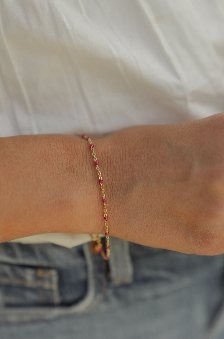 Bright, playful, and effortlessly dainty — the Pink Satellite Bracelet is your new favorite pop of color. Tiny pink beads are hand-wrapped into a delicate 14k gold-filled chain, creating a dotted “satellite” effect that adds just the right amount of detail to any stack.